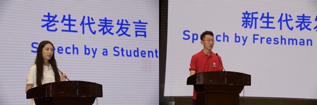 来自2018级市场营销专业的老生代表华若怡分享了自己的抗疫志愿者经历和在过去两年在爱恩的成长历程,她鼓励新生们脚踏实地、心怀感恩、甘于奉献,要以实际行动展现出爱恩学子青春激昂的绚丽风采;来自2020级信息管理与信息系统专业的新生申泰表达了初入爱恩所感受到的温暖,他庄严承诺:定将珍惜学习时光,练就过硬本领,以笃定的脚步走向崭新的诗与远方,以自信的笑容向着星辰大海出发。