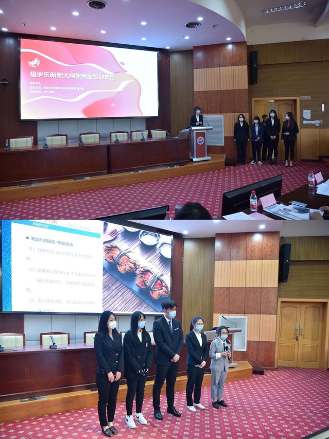 本次比赛结合新农科和新商科的理念,以上海福岁乐生物科技有限公司为案例背景,引导员工在知商爱商的同时知农爱农,并以巩固“线上+线下”销售模式、成就新潮产品、进一步拓宽年轻人销售市场为目的,要求各组参赛人员策划创新方案。本次决赛分为两个环节,首先由参赛选手在十分钟内展示策划案并进行Presentation,选手们悉心钻研、条分缕析,以良好的风范、出色的口才、敏捷的思维,充分体现了队员们的人文素质与团队协作能力;评委老师们针对每位参赛选手所展示的项目进行针对性提问,选手们作了详细回答。