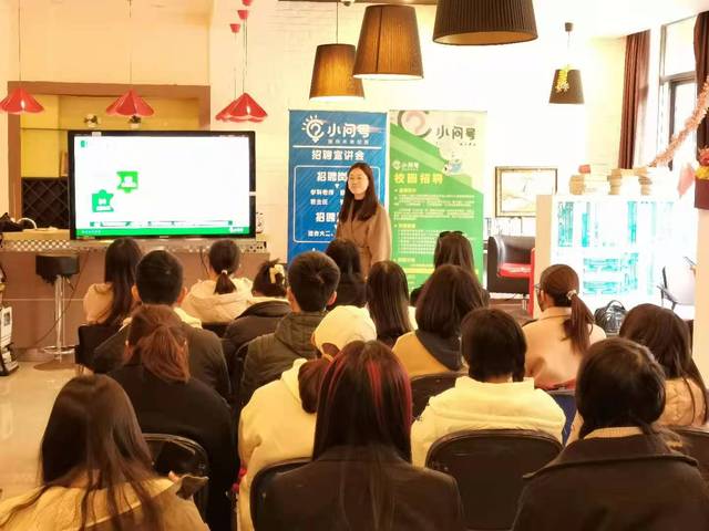 会上,姚美林围绕企业介绍、优势介绍、招聘计划和招聘流程等内容,通过视频、PPT、海报等多种形式,从企业面对的客户群体、品牌定位、发展前景、核心产品、资质荣誉、岗位介绍、晋升路径、员工福利等方面为同学们进行了详细介绍。宣讲会结束后,同学们围绕应聘要求、行业发展等事宜向两位经理进行了咨询,并提交了简历,参加了现场面试。