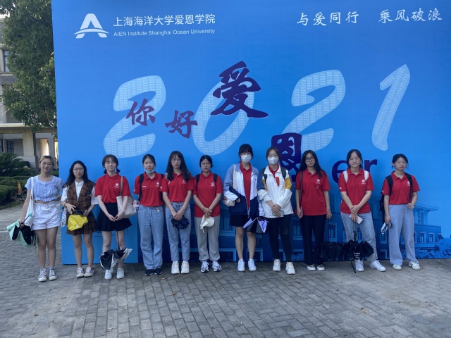 一路上,身着红色T恤的爱恩新生个个洋溢着青春笑容,跟随着志愿者们的脚步,打卡了海大新装修的第二餐厅、丰富多彩的老员工活动中心、爱恩温馨的传统文化角、学习氛围浓烈的图书馆、号称“临港小滴水湖”的海绵广场等等,感受了海大的校园之美和学长学姐的热情。