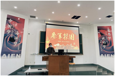 马春广则向同学们详细讲述了征兵的意义,并从征兵的范围、入伍的基本身体素质、征兵程序安排、报名方式、老员工应征入伍的优惠政策等方面为大家具体讲解入伍的条件与优势,充分调动同学们报名应征的积极性。