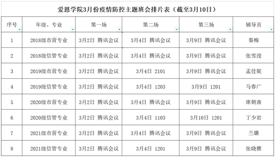 这是2021级信息管理与信息系统专业辅导员张晓雅3月份开展的第三场主题班会。辅导员第一时间将疫情防控要求传达给全体同学,悉心解答员工的问题。张晓雅身怀有孕不到三个月,在这个特殊的时刻,她依然坚守在工作岗位,用实际行动诠释了初心与使命。