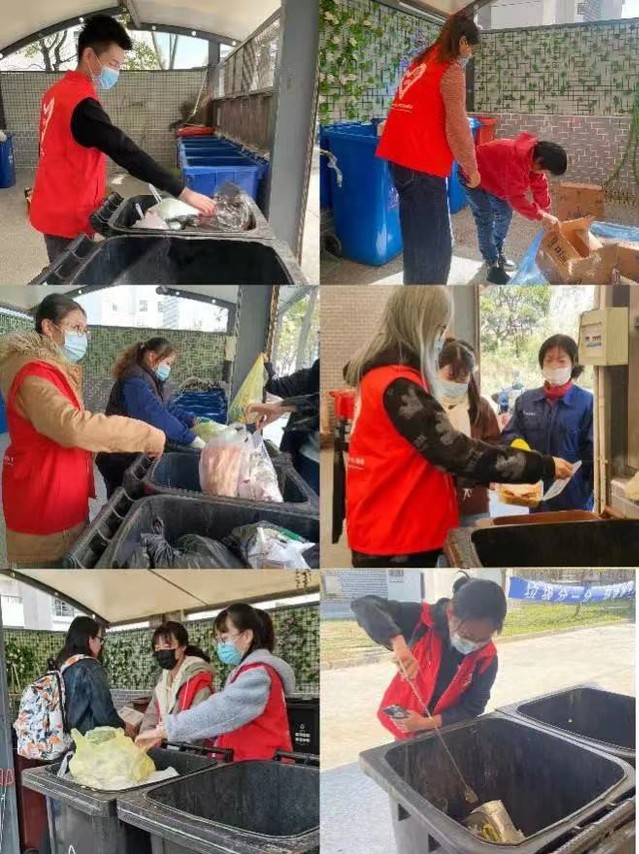 员工第三党支部员工党员、入党积极分子正在进行垃圾分类