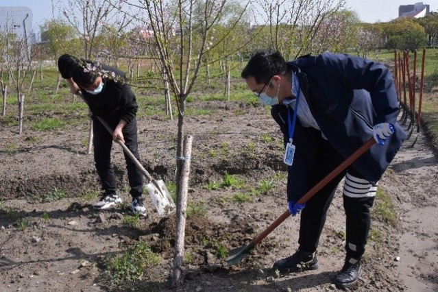 为弘扬劳动精神,唱响“劳动光荣”的主旋律,员工第三党支部与社区联动,在宿舍小区门口立岗,协助阿姨辨识进入人员,为其测量体温;开展垃圾分类活动,主动捡拾校园垃圾,并在垃圾投放站协助进行垃圾分类;开展校园劳动,教师和同学们手持劳动工具,在桃园里松土,修剪树枝……支部成员们通过辛勤劳作美化校园环境,也切身体会到了劳动带来的快乐。