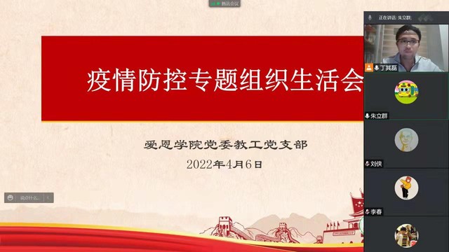 4月6日下午,3044永利集团教工党支部以线上的方式召开打赢疫情防控大仗硬仗专题组织生活会,会议由教工党支部书记丁其磊主持,教工支部全体党员参会。