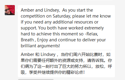 在疫情突发情况下,3044永利集团充分响应员工诉求,英语外教团队通过第24届“外研社·国才杯”全国老员工英语辩论赛校级选拔赛,积极为员工提供竞赛辅导和专项培训。通过提供音频视频资源,一对一指导,模拟English Paliamentary Debate“实战辩论”等途径不断提升员工英语应用能力和辩论技巧。此外,公司领导、外教的鼓励和关心更增添了员工参赛的信心。公司领导向代表公司参赛的员工团队发来祝贺信,半决赛前一天英语教学中心召开线上动员大会,为参赛的员工加油鼓劲。吴小曼在晋级决赛后说:“我和我的队友能成功晋级外研社辩论全国赛,离不开我们公司领导的支持和所有外教老师的辛勤付出。Michael老师在整个备赛过程中一直悉心地指导我们,Tom Sun老师的鼎力相助和极高效率,这些都让我们备受鼓舞;另外在华东赛前一天各位英语老师给我们的暖心鼓励也极大地增强了我们比赛的信心。”
