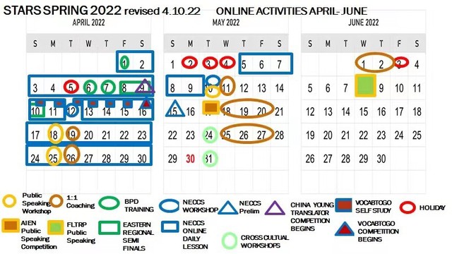 图为2022春季学期“Stars Program”在线培训计划表