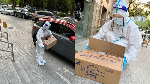 王仅淳同学表示:“防护服里真的很闷热,眼镜也常常起雾看不清。我只是穿一次几个小时而已,医务人员每天都要穿一整天啊,医务人员们真的很辛苦!我的志愿者邻居们也都很好,一旦需要他们成为大白,保护家人、邻居、上海这座城市时,每个人都义不容辞。很多人用自己的车子配送,车子放了很多货搞得很脏也不在意。还有很多人担任搬运的志愿者,哪怕是个子小小的女性志愿者也一箱一箱地一起搬,直到体力透支……这次经历增强了我的服务意识,提升了为人民服务的宗旨意识,也让我更热爱我所在的社区,我很荣幸能够成为其中的一员!”