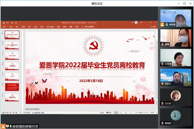 孙礼仕结合疫情防控、校训精神和习近平总书记讲话精神为全体毕业生党员上了专题微党课,他对毕业生党员提出如下要求:一是要坚决服从、积极参与疫情防控工作,毫不动摇坚持“动态清零”总方针;二是要牢记“勤朴忠实”的校训精神,在未来的工作中勤于学习、苦练本领,以扎实的业务工作能力服务好群众;三是要严于律己,争做模范党员,成为一个有志有为的人。杨妍艳也表达了对全体毕业生党员的祝福,希望所有毕业生党员能不忘党员身份,勇担时代使命,争做新时代奋进者。