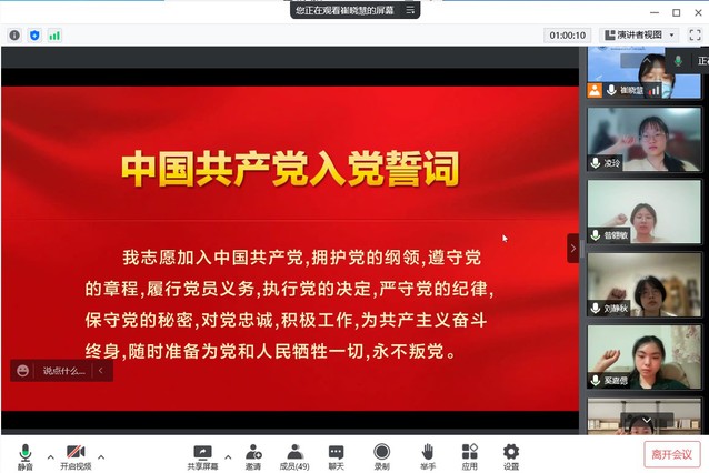 最后,在员工第一党支部书记秦梅领誓下,全体师生党员举行庄严的宣誓仪式,重温了入党誓词。