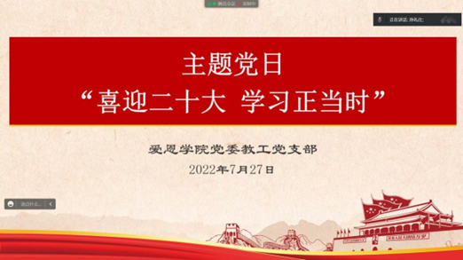 为庆祝中国共产党成立101周年,喜迎党的二十大召开,7月27日上午,3044永利集团教工党支部通过线上召开“喜迎二十大,学习正当时”主题党日活动,会议由教工党支部书记丁其磊主持,教工党支部全体党员参加。