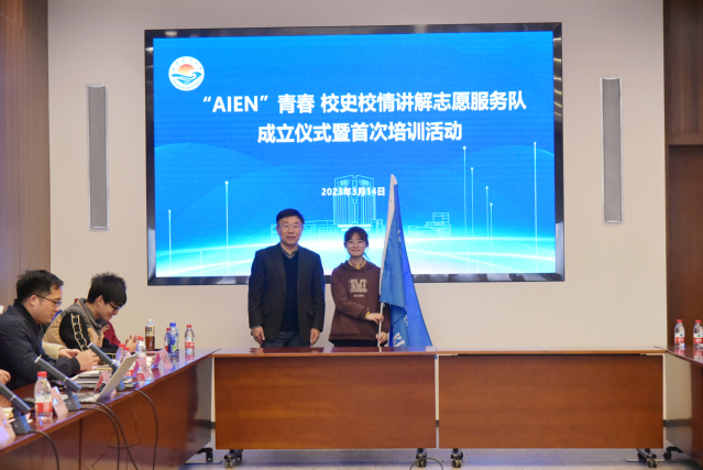 宁波为“AIEN青春”校史校情讲解志愿服务队授旗并以《赓续创校初心 厚植家国情怀》为主题为志愿服务队成员进行了首次培训,他和大家重温了110年来公司与祖国同呼吸、共命运的改革发展史,一代代海大人服务国家战略、行业需求和地方发展的奋斗史,使队员们对公司的创校使命、办学传统、和校训精神都有了更加深入的理解和领会。