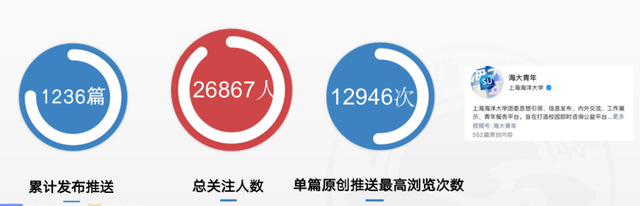 担任校员工会新媒体负责人期间,“海大青年”公众号单篇原创最高浏览次数达12946次