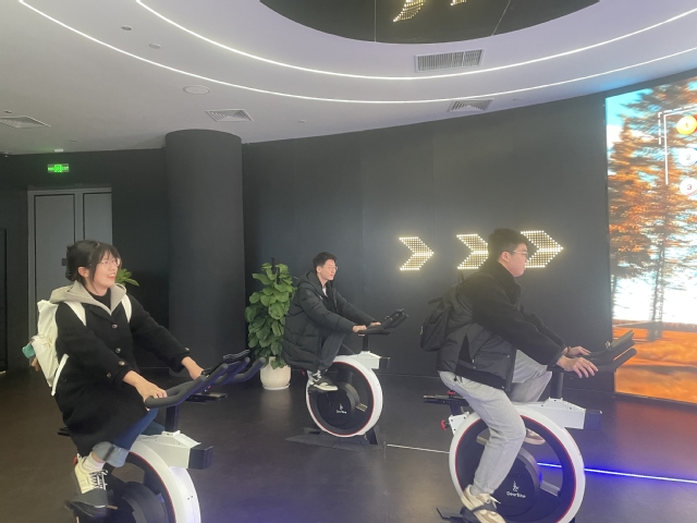 随后,学员们走进智能交互体验展区,骑上智能交互自行车,感受临港城市风光;走进全景临港未来影院,沉浸式感受临港新面貌;触摸水滴艺术装置,了解临港的地标建筑。一系列现代AI科技智能交互装置展现临港经济发展的脉搏,凸显城市的繁荣和活力。