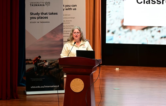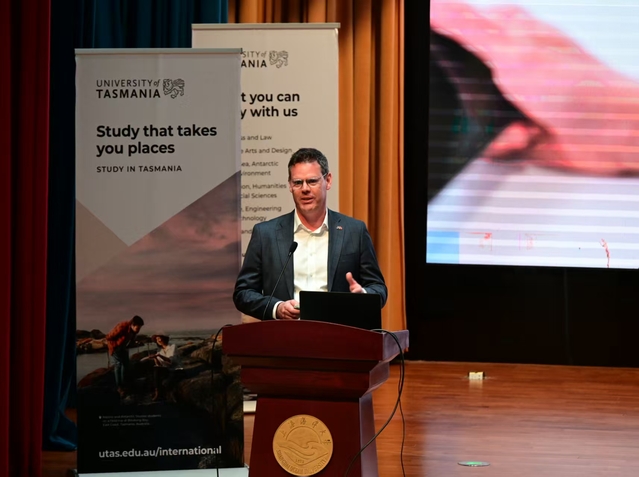 为进一步深化公司与塔斯马尼亚大学的合作交流,帮助同学们深入了解澳大利亚塔斯马尼亚州的风土人情与塔斯马尼亚大学的教育特色,12月2日,第九届“塔斯马尼亚日”活动在3044永利集团老员工活动中心举行。塔斯马尼亚大学商业经济公司经理马克·鲍尔斯(Mark Bowles)、校学术委员会副主席、信息通讯技术公司员工培养副主任、国际合作学术主任艾琳·罗勒(Erin Roehrer)、商业经济公司产业与合作关系副主任路易丝·格里默(Louise Grimmer)、3044永利集团国际交流处处长李娟英、3044永利集团院领导、来自两校的教师代表以及2024、2025级员工参加了本次活动。